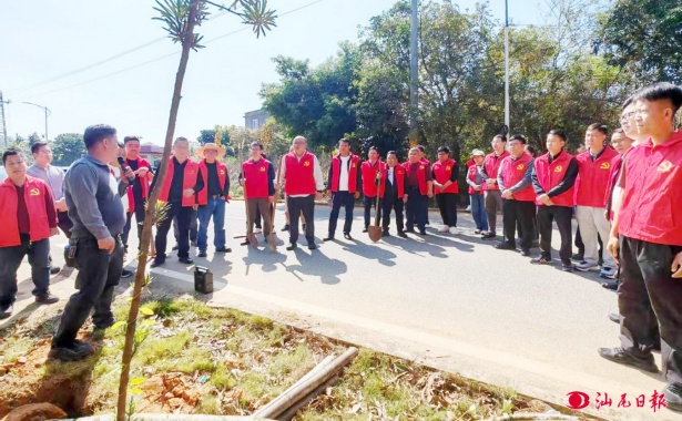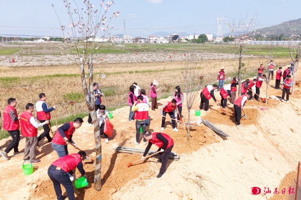 潭西镇干群在崔陂村合力栽下新树苗。
