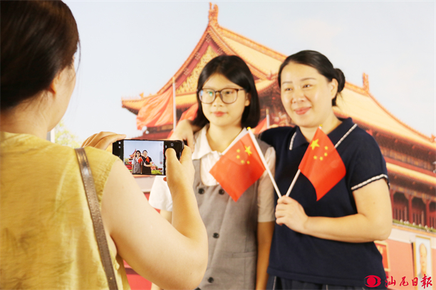 10月1日上午,海丰县党群服务中心热闹非凡,充满欢声笑语。不到9点,由创意背景板构成的“主题摄影区”前,已陆续有市民前来排队。他们手持小国旗,在主题背景前调整姿势,等待相机定格与国同庆的瞬间。“平时工作忙,很少专门带父母孩子拍照。这里布置得很有气氛,趁国庆来拍张全家福,感觉特别有意义。”带着一家四口前来的陈先生道出了许多参与者的心声。