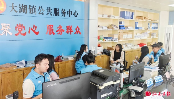走进大湖镇公共服务中心,宽敞明亮的大厅里,工作人员面带微笑,耐心解答问题;等候区内,老人手捧温水,轻声交谈;窗口前,居民李阿姨不到10分钟就办好了医保缴费……这样温馨而高效的场景,如今已成为大湖镇公共服务的常态。