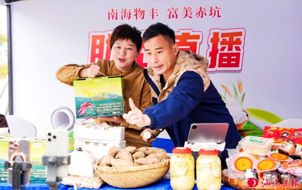 农产品推介会上,主播正在推介赤坑“好物”。