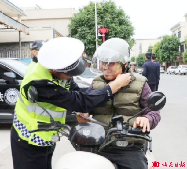 在141县道上,联合执法队重点查处未佩戴头盔、无牌无证驾驶等交通违法行为。执法人员坚持“教育为主、处罚为辅”原则,对违规驾驶人耐心劝导,提醒其摒弃侥幸心理、遵守交通规则,有效规范了道路通行秩序。“此次行动重点关注‘一老一小’高危群体和骑乘摩电未佩戴头盔的突出安全隐患行为,既为市民送上安全防护装备,更是通过面对面宣传教育引导,纠正部分群众不戴头盔的侥幸心理,进一步推动‘安全出行’理念深入人心”从源头上防范道路交通事故。”市公安局交管支队红海湾大队教导员郭金柱表示。