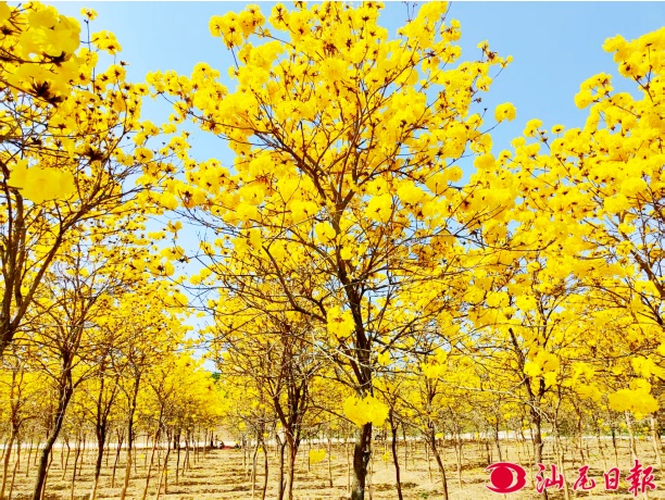 母亲嫌其“不是红色”的黄花风铃木,却是我最喜爱的花树。近几年,它愈发常见,路边、池畔、山坡,处处可见其踪影。春日一到,满树金黄,先花后叶,枝头宛如悬挂串串风铃,烂漫无比。