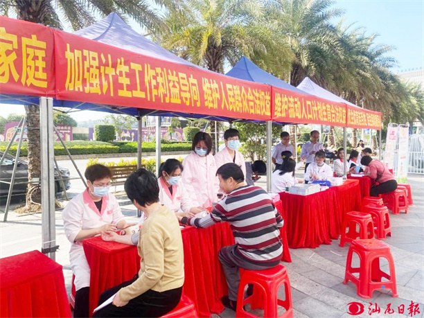 11月28日,由市卫健局、市计生协、市计生服务中心主办,城区卫健局、城区计生协、中国人寿汕尾市分公司协办的2023年生殖健康咨询宣传月活动在市区金海明珠广场举办,进一步推进生殖健康咨询服务工作落实,促进人口长期均衡发展和家庭和谐幸福。活动现场,工作人员为群众提供生殖健康咨询服务,派发“两癌”免费筛查、生殖健康、计生政策、优生优育等宣传资料150多份,为群众发放叶酸110盒、避孕套130盒。图为活动现场。