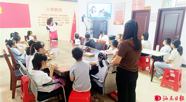 东坑镇东坑社区组织小朋友开展“开学第一课”,普及安全知识。