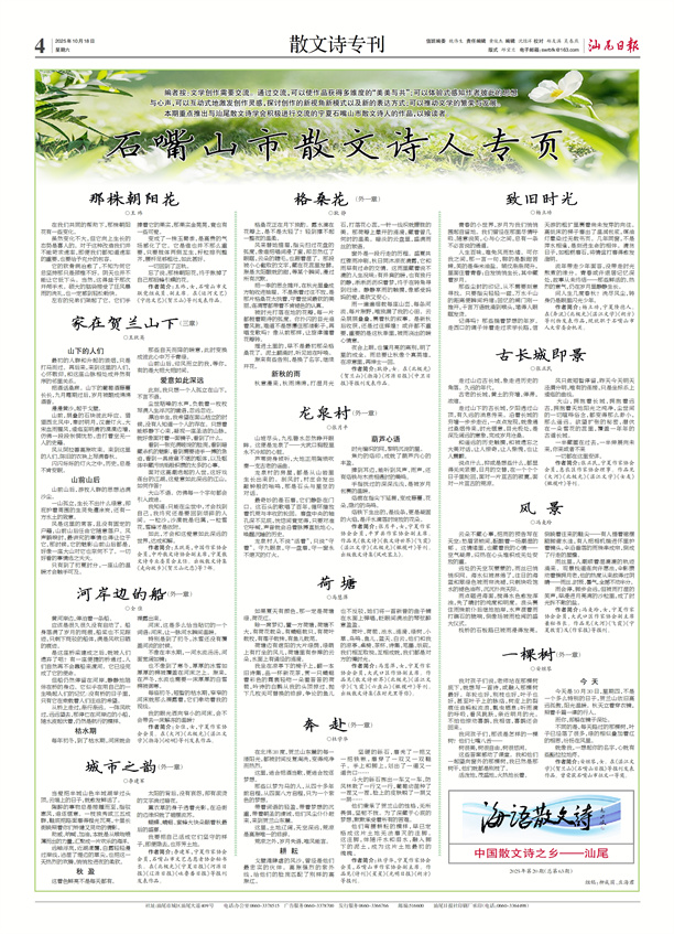 本期重点推出与汕尾散文诗学会积极进行交流的宁夏石嘴山市散文诗人的作品,以飨读者。