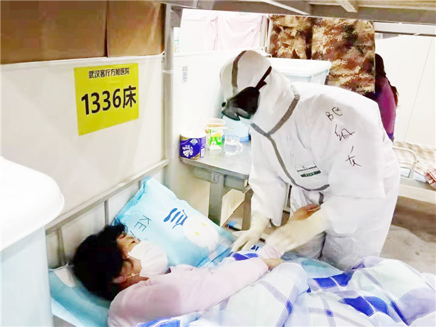 曾映芳在武汉方舱医院护理病人。