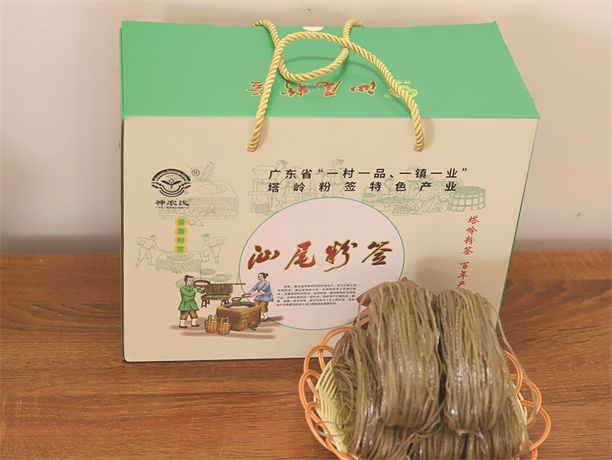 “传承不守旧,创新不忘本”是“塔岭准签”秉持的理念。合作社在生产环节引进现代化设备,获得“实用新型专利”,大幅提升生产效率,确保产品质量稳定。同时,企业告别过去的麻袋散装,推出精美礼盒包装,让汕尾粉签走上了城市商超和电商平台,成为更具辨识度的地方特色产品。