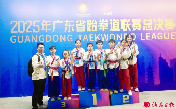 汕尾日报讯(记者彭子珍 通讯员 谢海宁 文/图)近日,2026年广东省跆拳道联赛总决赛在佛山市禅城区岭南明珠体育馆落下帷幕。来自我市震威体育的8名跆拳道小将在教练黄冠雄的带领下,不畏强手、奋勇拼搏,斩获7金2银2铜的优异成绩。