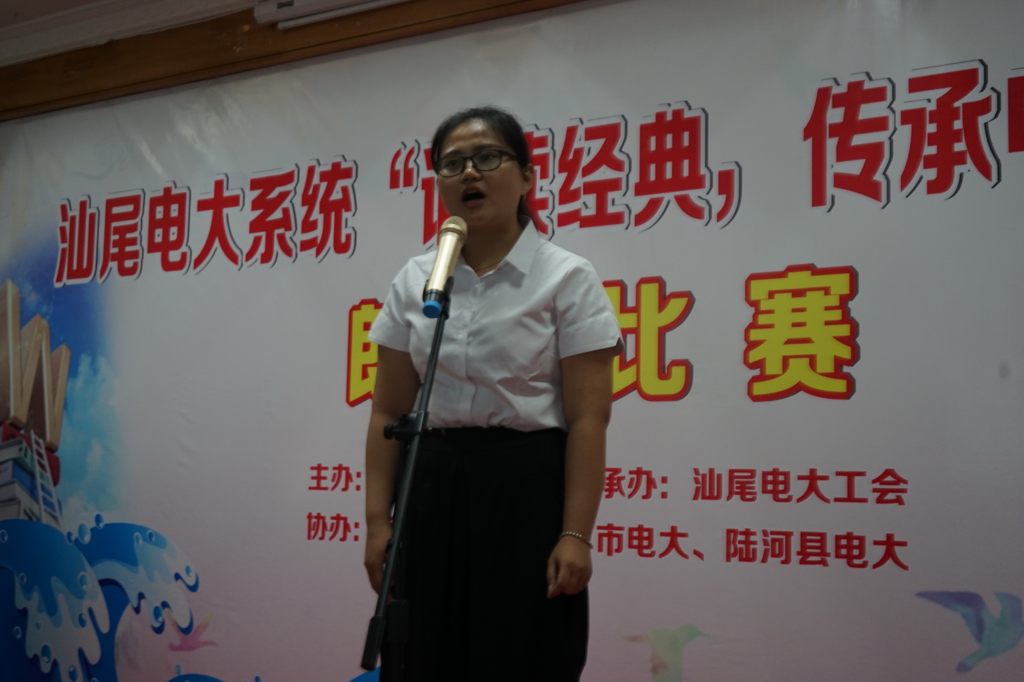 为助力全市创建“广东省文明城市”工作,由我校主办、海丰电大、陆丰电大、陆河电大协办的汕尾电大系统“诵读经典,传承中华文化”朗诵比赛于6月11日上午成功在我校报告厅落下帷幕。