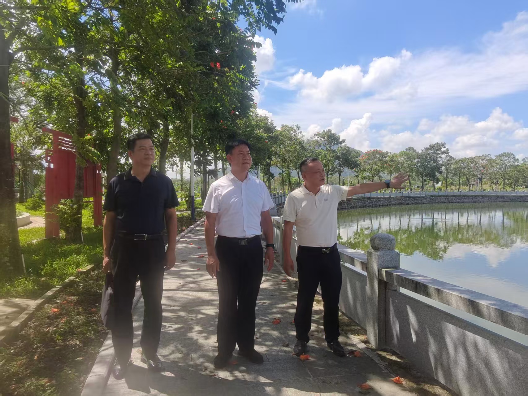 陈炳玄认真听取了卧龙村的工作情况汇报并参观了建设完工投入使用的绿美生态小公园项目,对该村村容村貌出现的可喜变化表示肯定和赞赏。