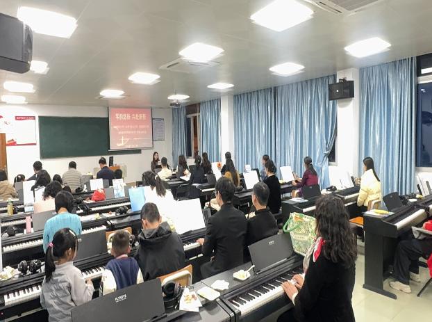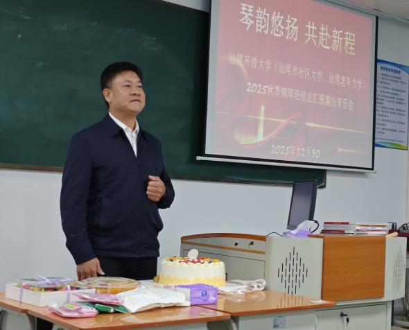 2025年12月30日晚上,汕尾开放大学教学楼钢琴教室灯火通明,琴声与掌声交织。2025年秋季社区教育、老年教育钢琴班结业汇报演出音乐会在此隆重举行。学校党委书记、校长陈炳玄亲临现场并全程参与活动。