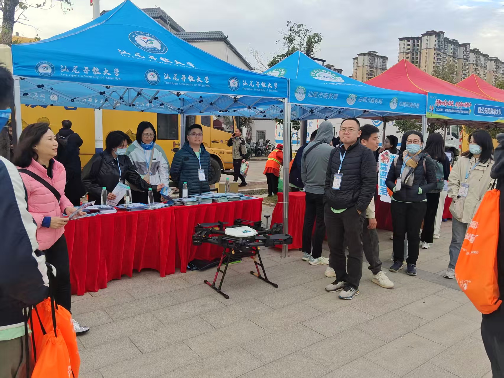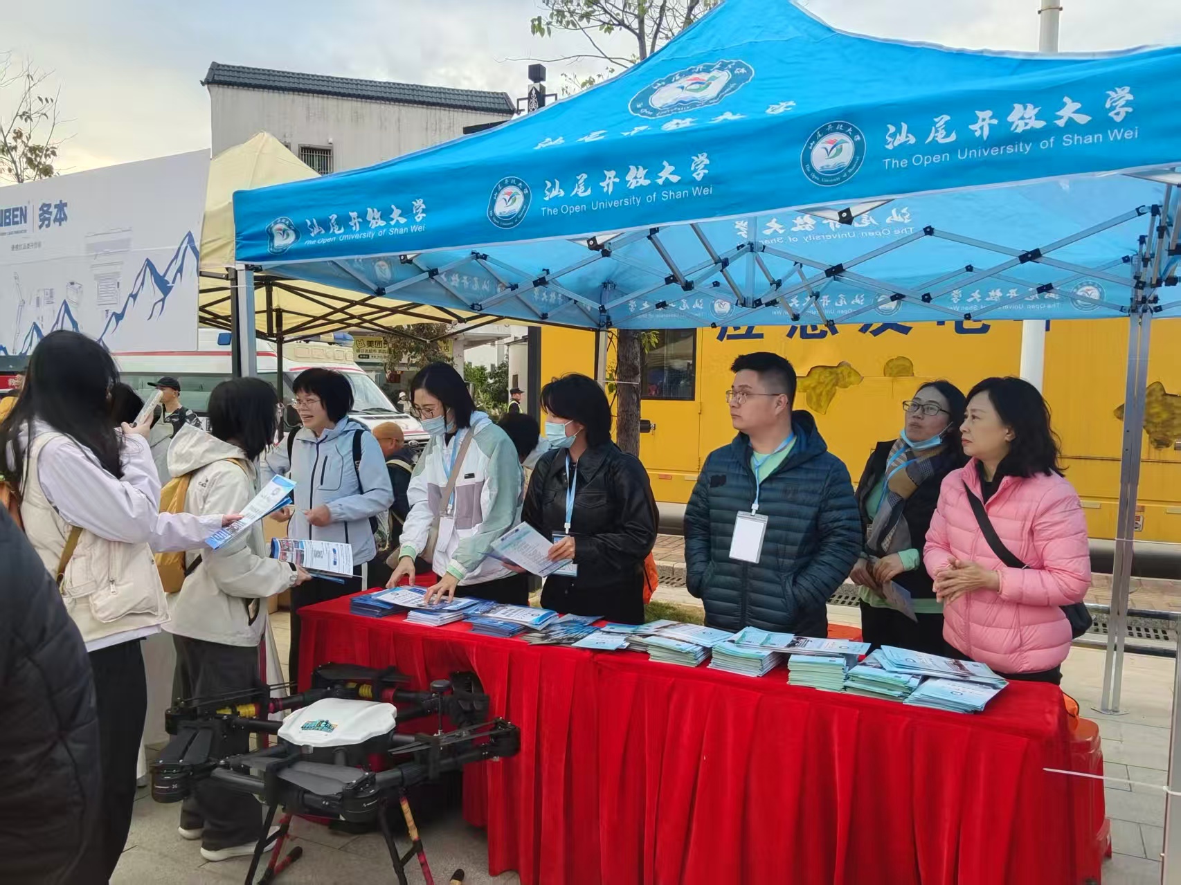 汕尾开放大学作为本届活动唯一教育类支持单位,由党委书记、校长陈炳玄亲自带队,组织全校教职工 20 人全程参与,并在现场设立“开放教育+社区教育+无人机培训” 一站式咨询展区,用脚步丈量绿美汕尾,用服务传递终身教育理念。