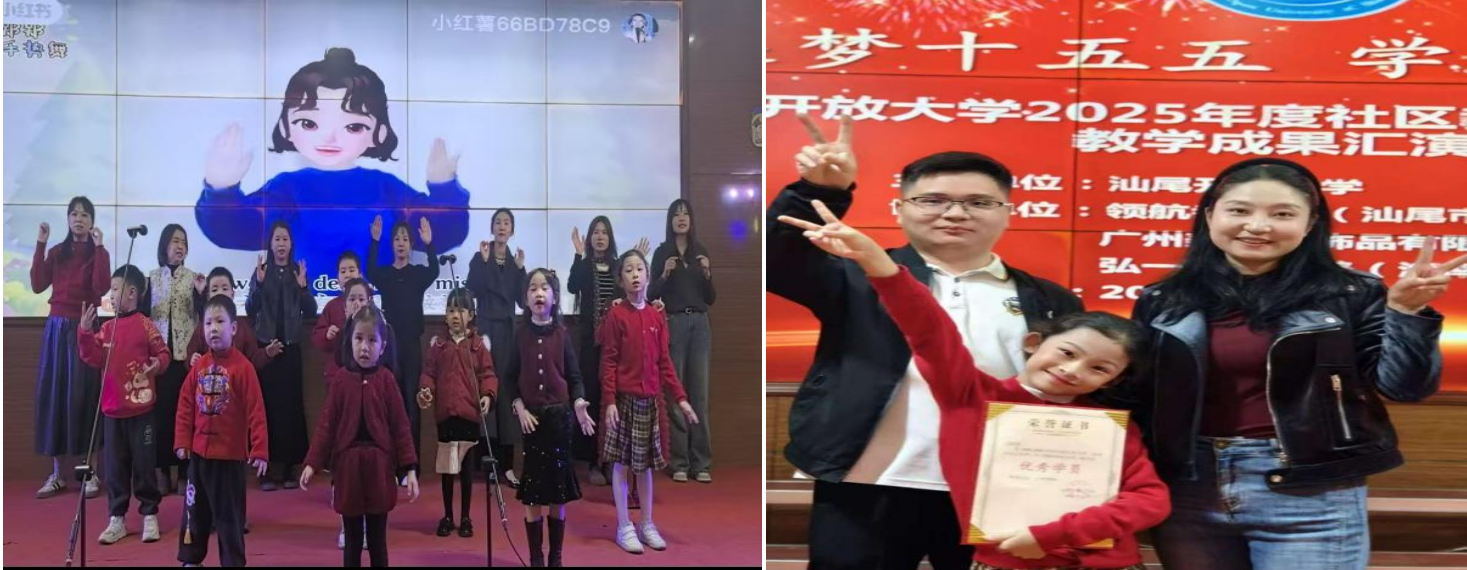 在学校举办的2025年度社区教育文艺汇演中,公共英语角精心编排的亲子合唱英文节目惊艳亮相,家长与孩子默契配合、温情演绎,用流利的英文演唱和真挚的情感表达,展现了英语角的教学成效与亲子间的温馨氛围,赢得了现场观众的阵阵掌声,也为社区教育成果汇演增添了独特的亮点,充分彰显了公共英语角在丰富社区文化生活、促进亲子互动方面的积极作用。