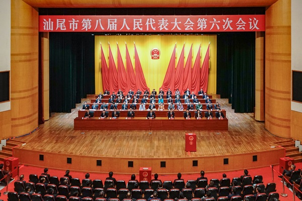 2月26日下午,汕尾市第八届人民代表大会第六次会议圆满完成各项议程,在市区马思聪艺术中心会堂胜利闭幕。