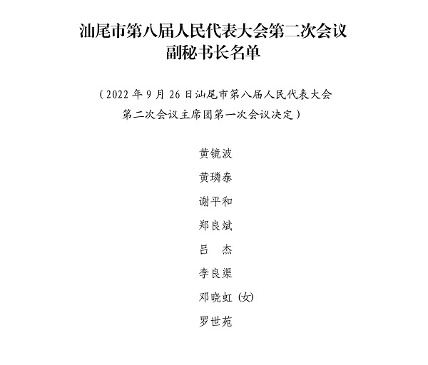 汕尾市第八届人民代表大会第二次会议副秘书长名单