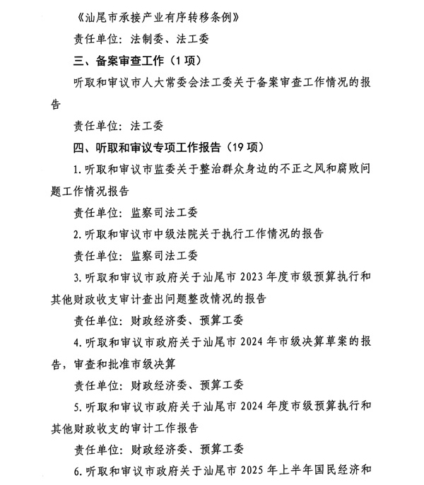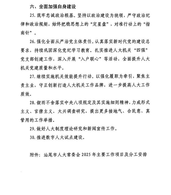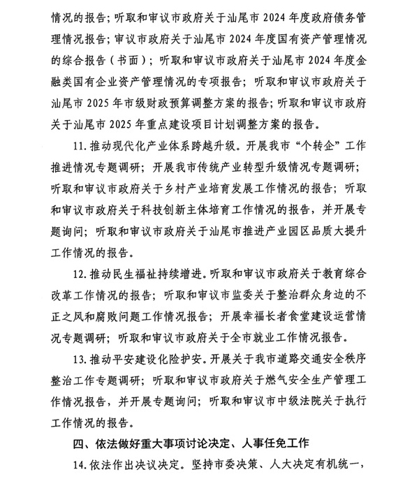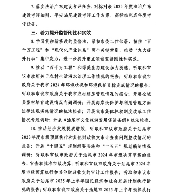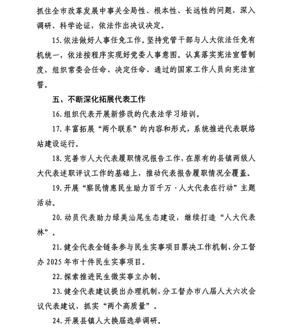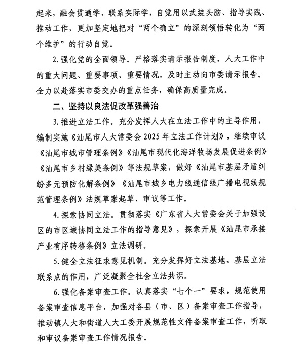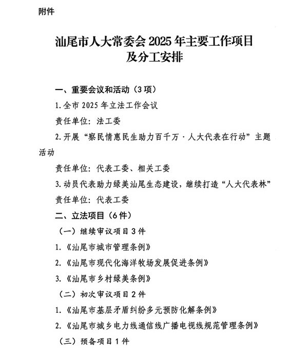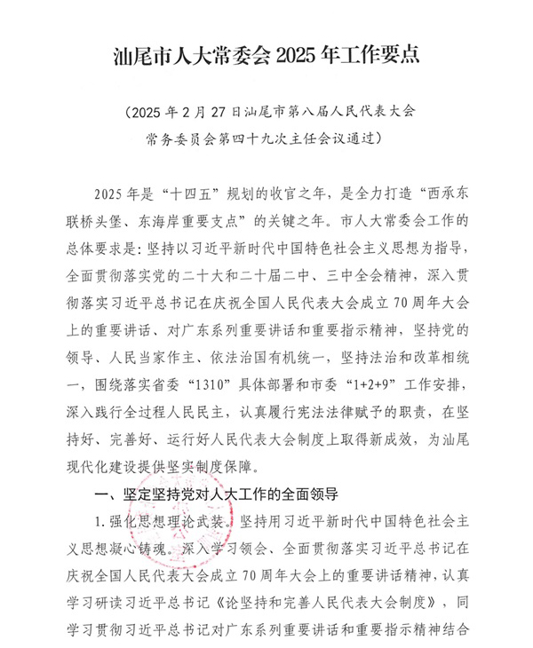 汕尾市人大常委会2025年工作要点