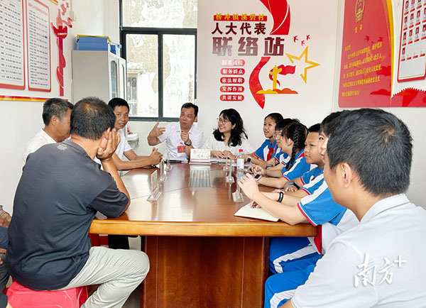 视察结束后,一场别开生面的座谈会在桥冲镇新时代文明实践站举行。“小小代表”们踊跃发言,汇报接待选民和入户走访的情况,例如:有同学注意到农村学校生源减少的现象,引发大家对教育问题的思考;有同学建议增加健身场地与器材,虽言辞稚嫩却充满对家乡建设的关切。