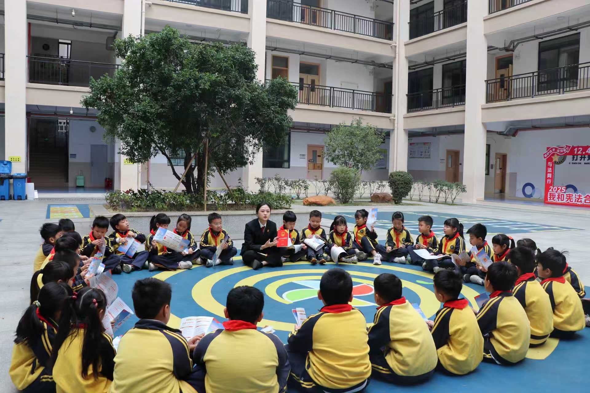 12月4日是我国第十二个国家宪法日。为弘扬宪法精神、增强青少年法治意识,陆丰市人民法院组织干警走进春源双语学校,开展了一场别开生面的“学习贯彻习近平法治思想,推动宪法深入人心”主题宣传活动。 初冬暖阳洒满校园,同学们围坐一圈,目光专注。法院干警用通俗易懂的语言,从“宪法与我们的关系”讲起,通过生动案例阐释宪法赋予公民的权利与义务,让高高在上的宪法条文变得亲切可感。 随后进行的宪法知识问答环节,将现场气氛推向高潮。同学们踊跃举手,争相回答,在互动碰撞中,宪法知识不再是书本上冰冷的文字,而是融入思考的鲜活认知。 “中华人民共和国公民有受教育的权利和义务……”清脆整齐的诵读声在操场回荡。在“宪法朗读”环节,同学们齐声诵读部分宪法条款,庄严的氛围让宪法的神圣感浸润心田。 活动最后,同学们纷纷站到宪法打卡墙前,分批次与宪法合影留念,不仅定格了灿烂笑容,更将尊崇宪法、学习宪法、遵守宪法的信念深深镌刻在青春记忆里。 宪法教育是青少年成长的必修课。陆丰法院将持续开展形式多样的普法进校园活动,让法治精神在少年心中扎根,护航青春与法治同行,为培养自觉尊法学法守法用法的新时代少年贡献司法力量。 来源:陆丰法院