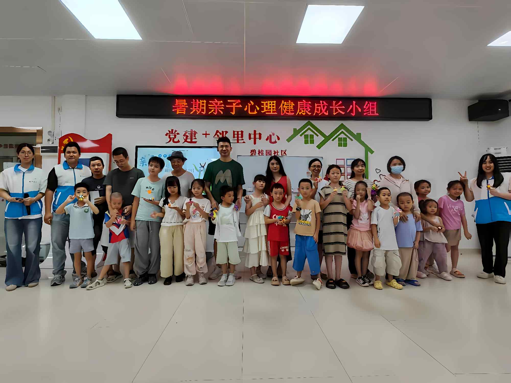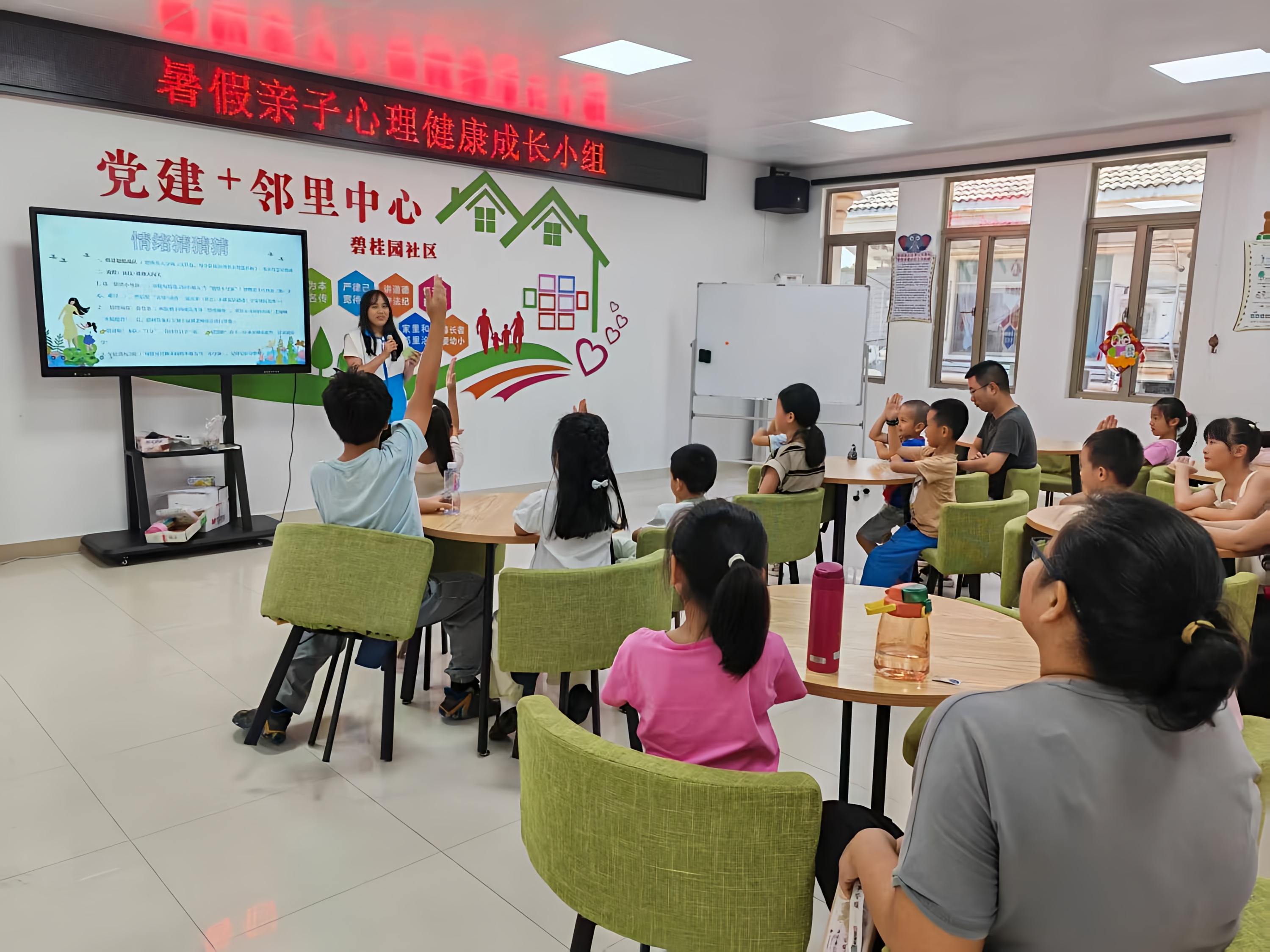本次活动依托城区碧桂园社区党群服务中心阵地优势,围绕“靠近爱—懂责任—学沟通—共成长”的逻辑主线,以渐进式课程设计推动亲子关系深度提升,充分体现“儿童为本、家长主体”的指导原则。在“靠近你,感受爱”初始环节,工作人员通过《小组契约》共建明确互动规范,借助“找宝贝”游戏拉近距离,引导家长以平等姿态倾听孩子内心诉求,迅速营造起信任开放的活动氛围,为后续服务夯实情感基础。