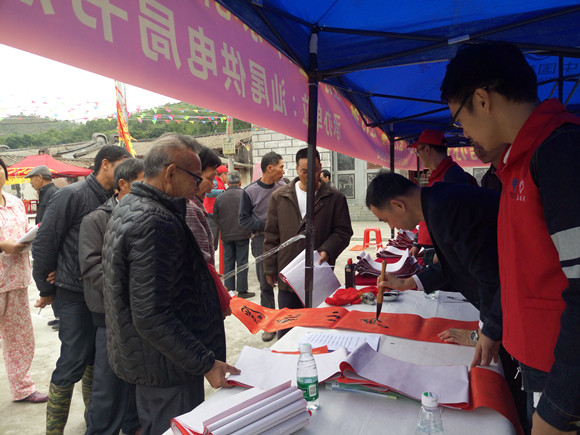 精准扶贫春联送吉祥,金鸡报晓大化永安康!此次送春联和用电宣传活动,给村民送去了社会的关怀与温暖,营造浓厚的节日氛围,有效推进全市创文工作的开展,同时增强了村民在国家新一轮精准扶贫精准脱贫的惠民政策下安居乐业,迈向小康的信心!