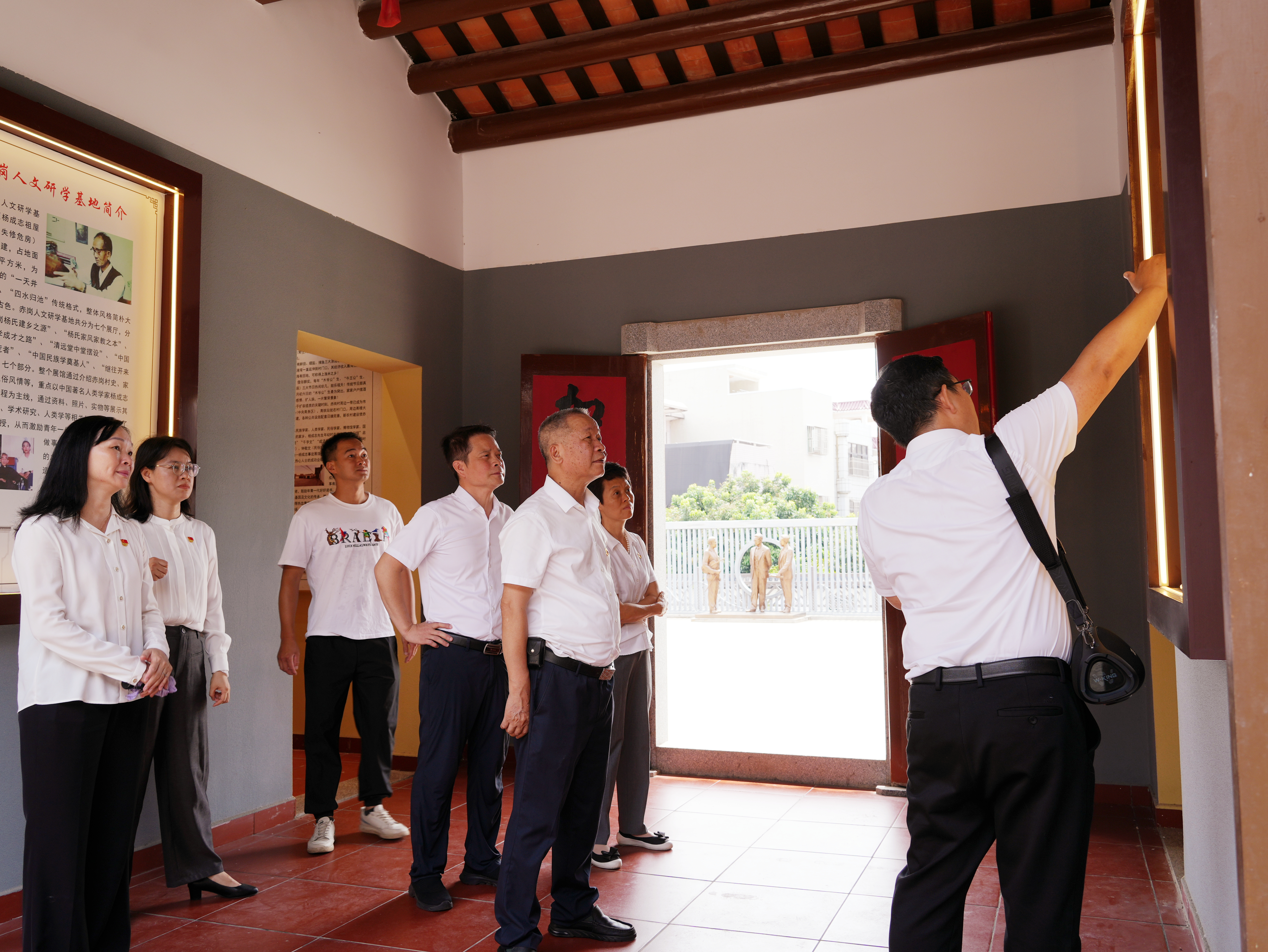 献花仪式结束后,党员干部前往赤古村开展入户联心活动。黄镜波带领大家走访困难党员家庭,详细了解其生活状况,宣传党的政策,发放慰问金,将组织的关怀落到实处。活动期间,全体人员还参观了赤岗人文研学基地。